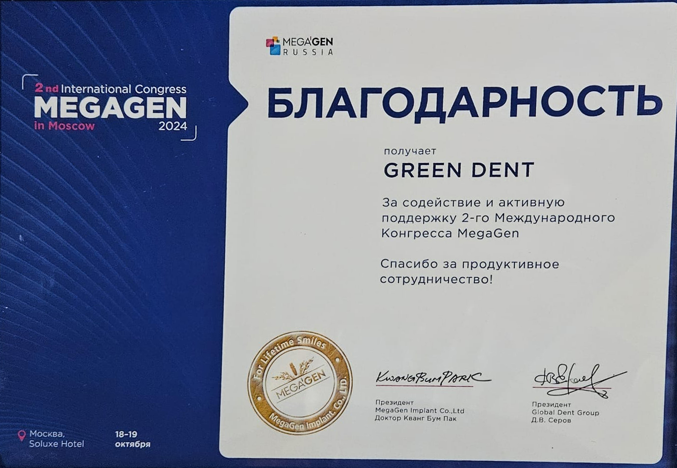Благодарность Megagen 2024
